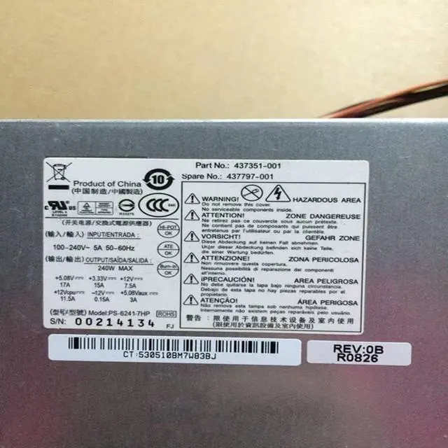 • PSU For dc7800 dc7900 240W Power Supply PS-6241-7HP PC6014 DPS-240MB-1 437798-001 437352-001 437351-001 437797-001