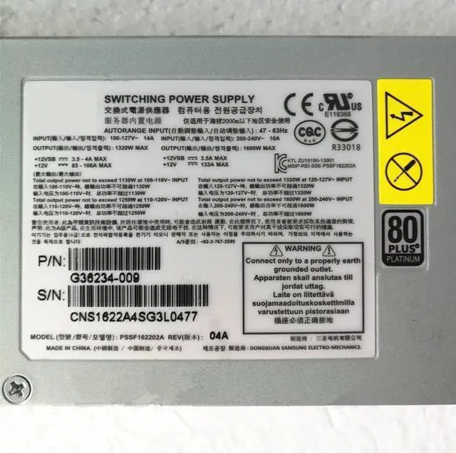 • Almost PSU For 1600W Power Supply PSSF162202A G36234-009 G36234-005 CNS1622A4SE3J0566 DPS-1600TB A