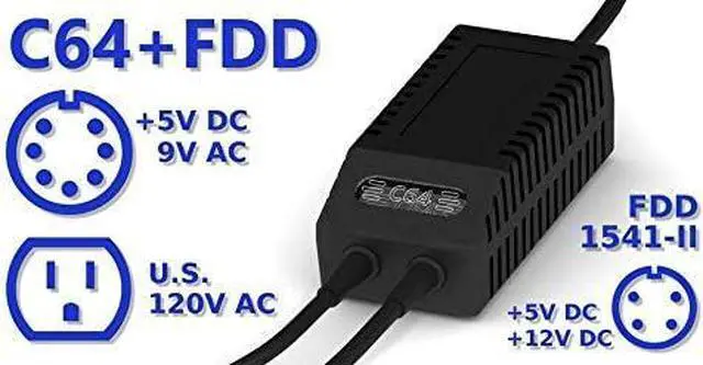 High-quality Commodore 64 replacement power supply unit (PSU) with an additional power output for an FDD 1541-II/1571-II/1581. Designed specifically for C64 and VIC-20 systems to preserve them in a pristine condition for years to come. Stabilized and filtered +5V/2.0A DC along with 9V/1.1A AC ensure continued error-free operation of your C64.Replacement power supply for Commodore 64 and VIC-20