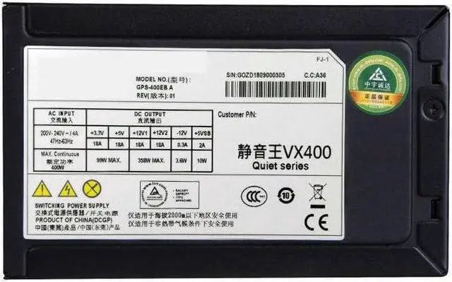 • PSU For VX400 Mute Wide Desktop Computer Power Supply Rated 400W Peak 500W Power Supply GPS-400EB A