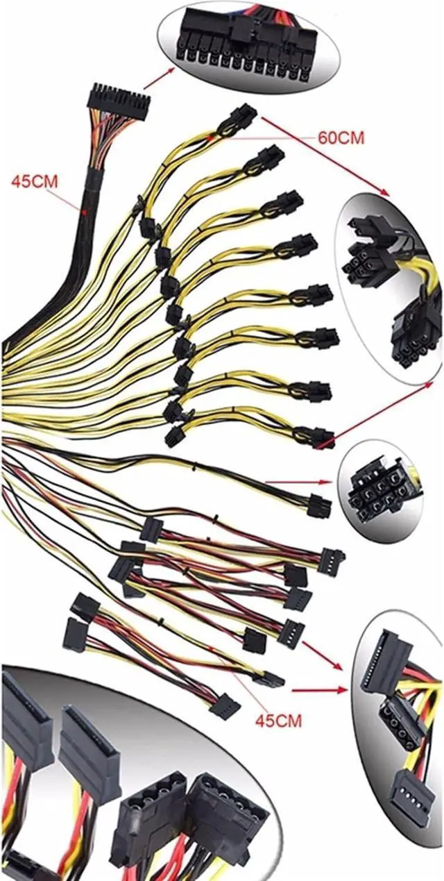 1800W ATX Modular Mining PC Power Supply B847 85 75 Supports 8 Graphics Card 160-240V Power Supply Mining Machine