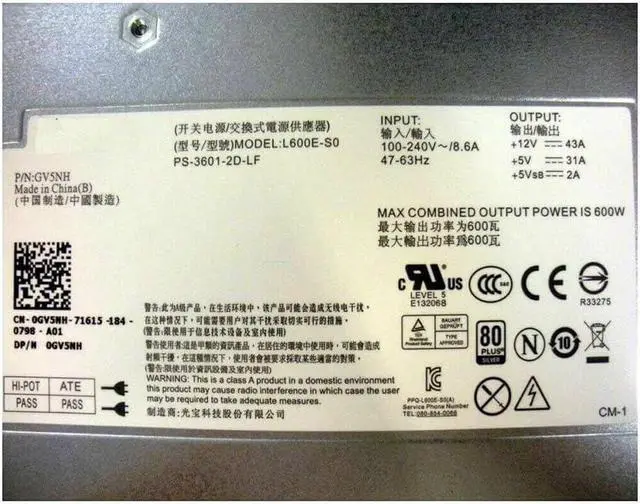 • For MD1200 MD3200 Server Power Supply 06N7YJ 6N7YJ L600E-S0 600W