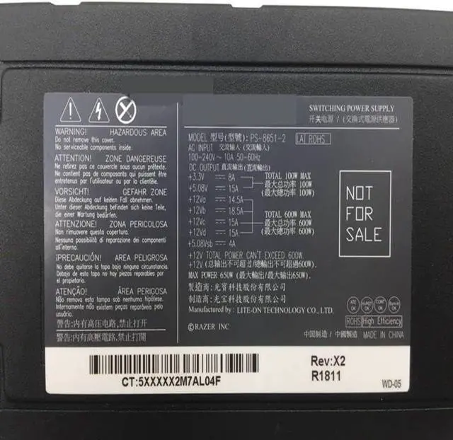 • PSU For Liteon Pazer 650W Switching Power Supply PS-8651-2