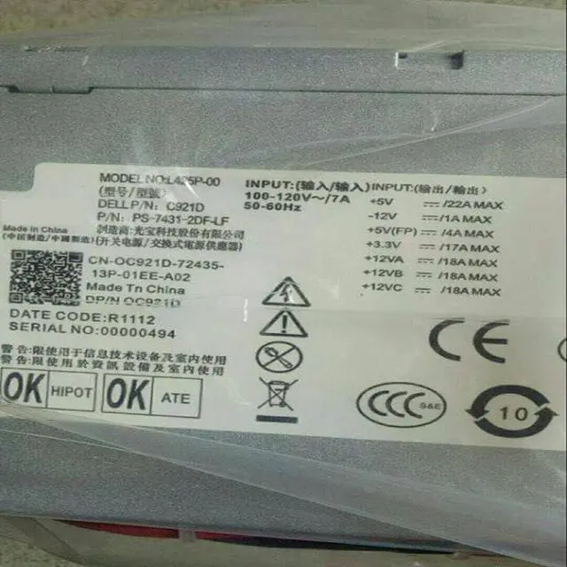 • PSU For XPS 410 420 430 9200 E520 Power Supply L425P-00 C921D TP728
