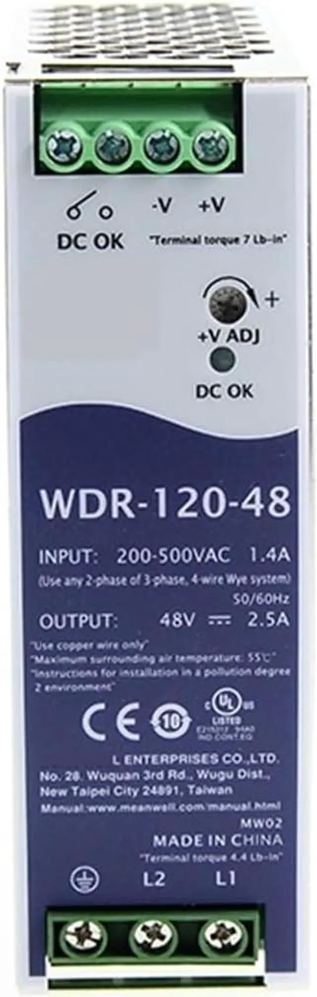 FeaturesSingle and two phase wide input range 180 550VACProtections: short circuit/overload/over voltage/over temperatureCooling by free air convectionBuilt-in constant current limiting circuitCan be installed on DIN rail TS-35/7.5 or 15 UL508(industrial control equipment)approvedEN61000-6-2(EN50082-2) industrial immunity level100% full load burn-in testBuilt-in DC OK relay contactApplicationsIndustrial control systemSemiconductor fabrication equipmentFactory automationElectro-mechanical apparatus