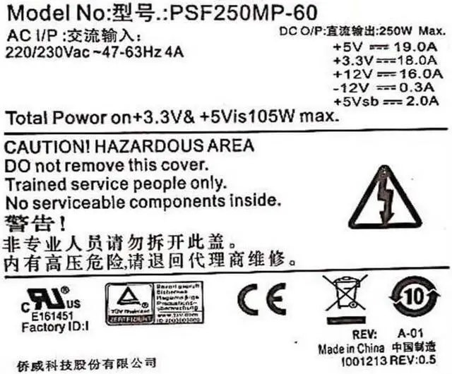 PSU for DVR NVR 20Pin IDEx8 250W Switching Power Supply PSF250MP-60 ST-250MAC-05E