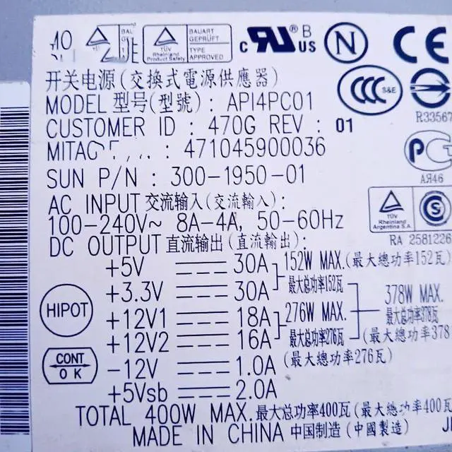 for Power Supply for U20 300-1950-01 400W API4PC01 Work Good