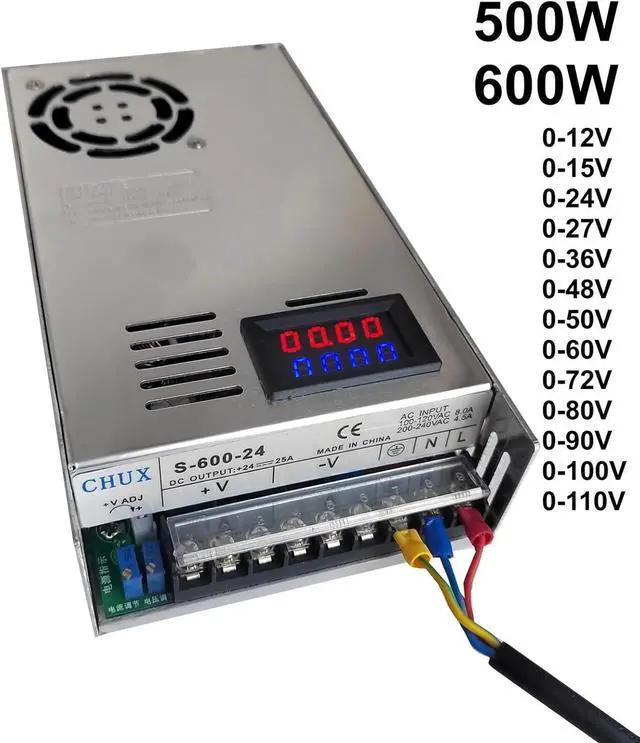 Power Supply500W 600W adjustable switching power supply digital display 12v 15v 24v 27v 36v 48v 50v 60v 72V AC DC LED
