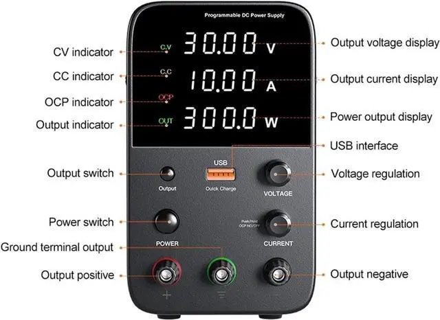 3.LED display of voltage, current and power, high precision and features of voltage stabilization, current limiting, and simple operation.