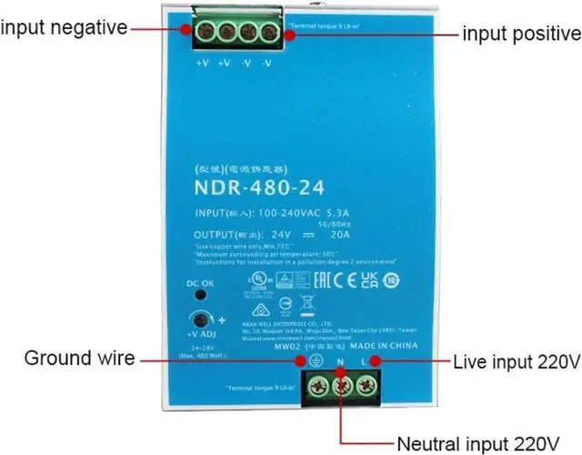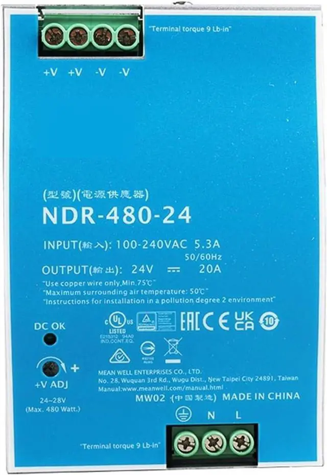 NDR Series 480W 24V Output Din Rail Switching Power Supply for Industry Control System