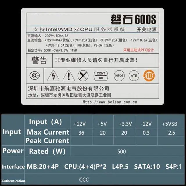 • PSU For Power Supply for Industrial Control Server SATA*10 No GPU 500W Power Supply Rock 600S