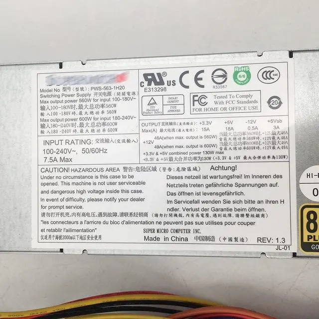 • PWS-563-1H20 For Server Power Supply 560W MAX 1U