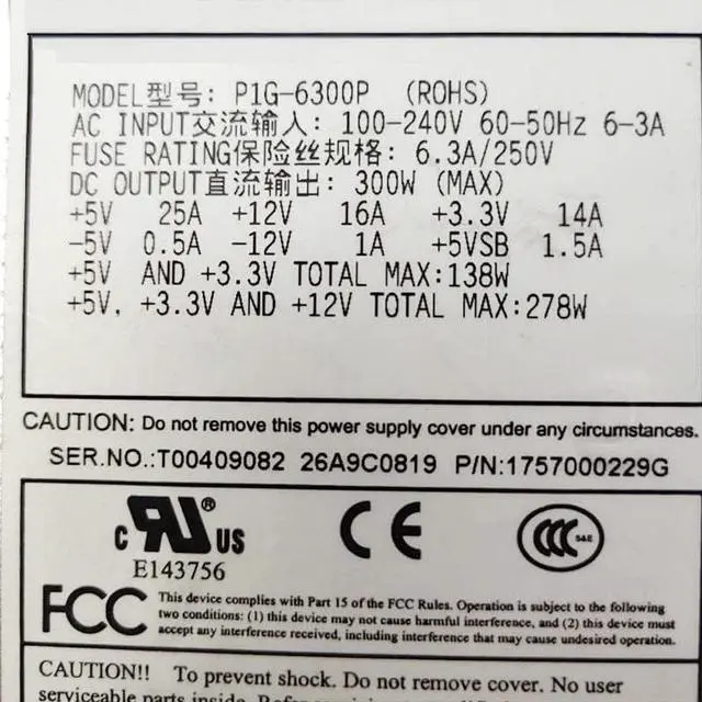 • For Zippy Server Power Supply P1G-6300P 300W 1U Tested