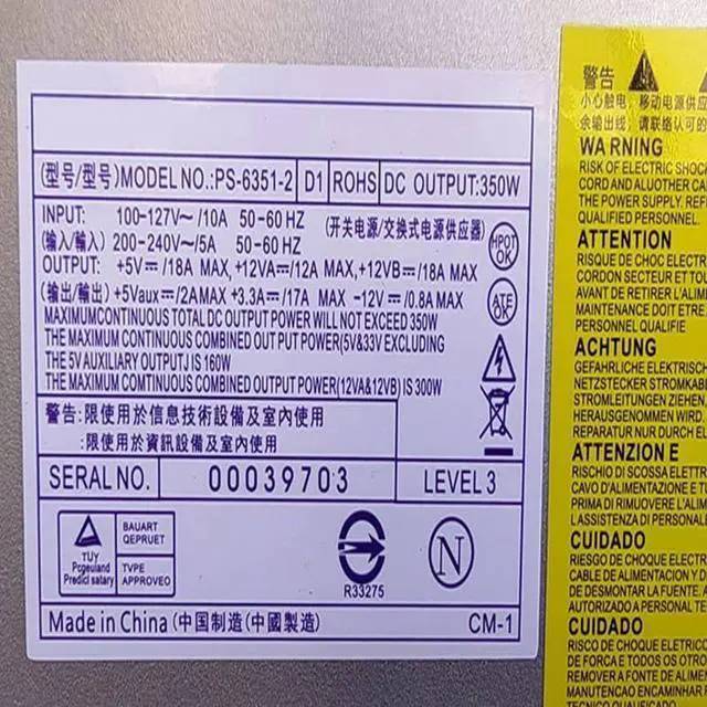 • PSU For 350W Power Supply 04HPGF 0G192T 0G846G 0J515T 0D341T 0G738T 0J517T 0G849G FY630 0XW601 0FU913 D350P-00 0X2634