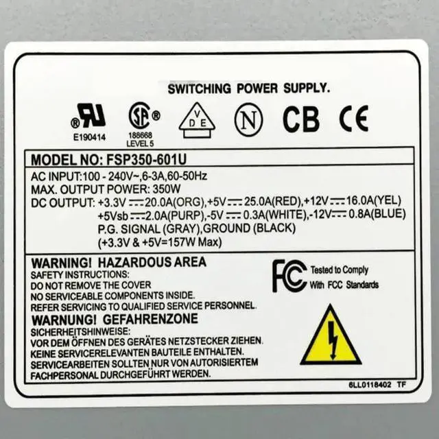 • PSU For FSP -5V 1U 350W Switching Power Supply FSP350-70MU FSP350-601U