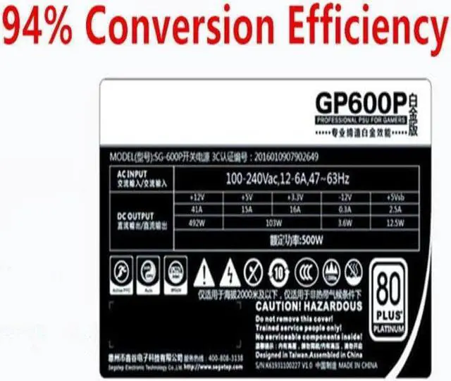 PC PSU for iGame RTX2080Ti Broad Silence 80PLUS Platinum 500W Power Supply GP600P
