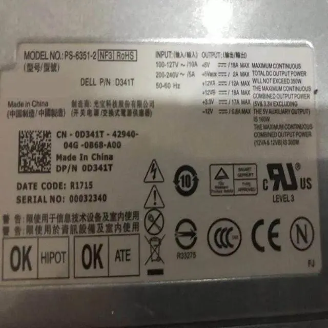 PSU for 400 410 I530 8100 Power Supply DPS-350VB C DPS-350VB B DPS-350VB A PS-6351-1 M282C FU909 PS-6351-2