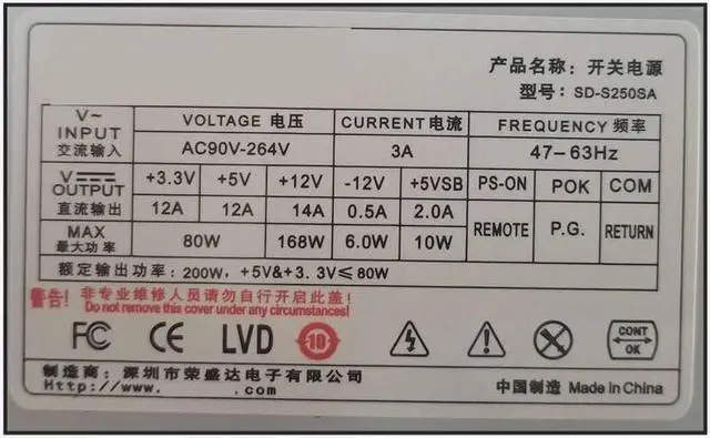 PSU For MICRO 200W Switching Power Supply SD-S250SA