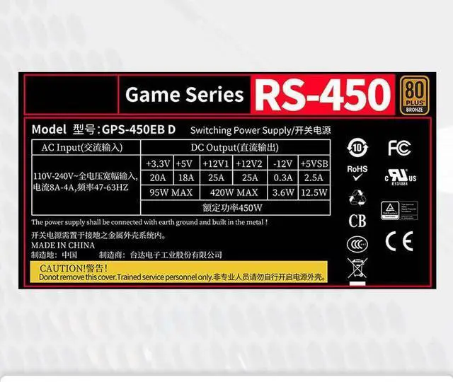 PSU for RS-450 80plus Bronze Rated 450W Peak 550W Switching Power Supply GPS-450EB D