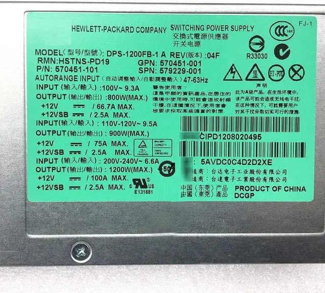• Server Power Supply For DL580 G7 DPS-1200FB-1 A HSTNS-PD19 579229-001 570451-001 570451-101 12V 100A 1200W