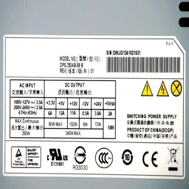 • PSU For IPC Security 1U 250W Power Supply DPS-250AB-59 B