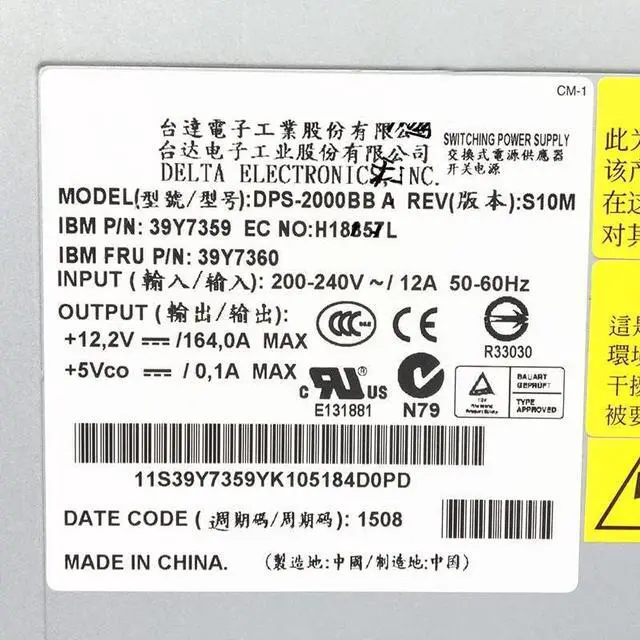 • Power Supply for 8677 HS20 DPS-2000BB A 24R2710 39Y7359 39Y7360 74p4452 74p4453 12v 164A 2000W Fully Tested