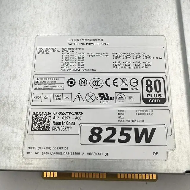 D825EF-00 for T5600 T5610 Power Supply D825EF-01 DPS-825BB A 0G57YP 825W