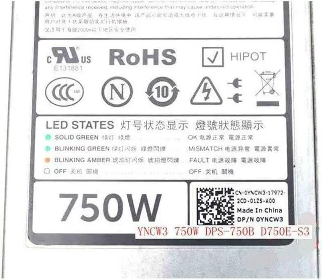 YNCW3 750W DPS-750B D750E-S3 Server DC Power Supply 750W #XH 819954855686