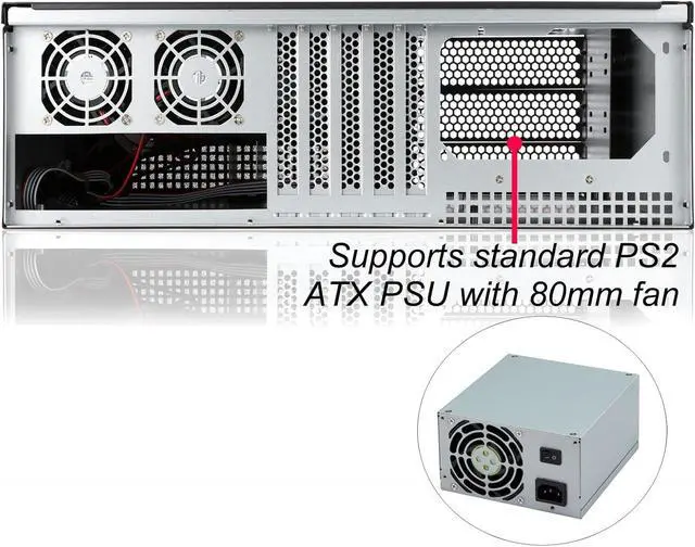 Supports standard ATX power supply with side 80mm fan or bottom 120mm fan or SFX PSU (need to use the ATX to SFX braccket in screw box