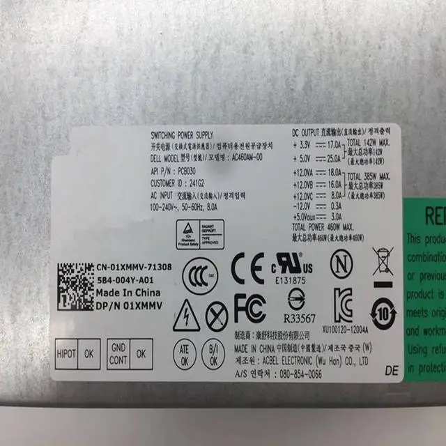 MIDTY PSU For XPS 8000 460W Power Supply D460AM-03 AC460AD-01 HU460AD-01 H460AD-00 HU460AM-01 GJXN1 FVGCW RH8P5 7P3WV