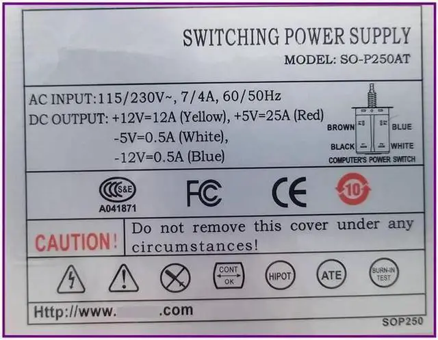 PSU for Rosor at P8P9 250W Switching Power Supply SO-250AT