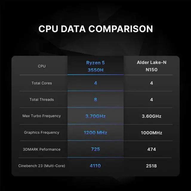 POWERFUL PERFORMANCEMAGICNUC AS1mini PC is powered by the Ryzen 5 3550H processor, up to 3.7GHz. 4 cores/8 threads, greatly suitale using for home and office.