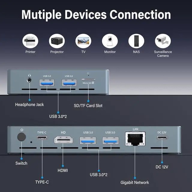 Rich Build In & I/O PortsHandheld pc all important connections are available,1 x TYPE-C(Full function),4 x USB 3.0,1 x HDMI 2.0,1 x RJ45,1 x Headset,1 x SD card Shot,1 x DC Port(12V),If mini PC ports are not enough for our daily computer use,we can connect the expansion port through the full-featured USB C port.supports Wake on LAN , PXE, Auto Power on, RTC Wake Settings built-in audio, built-in microphone.