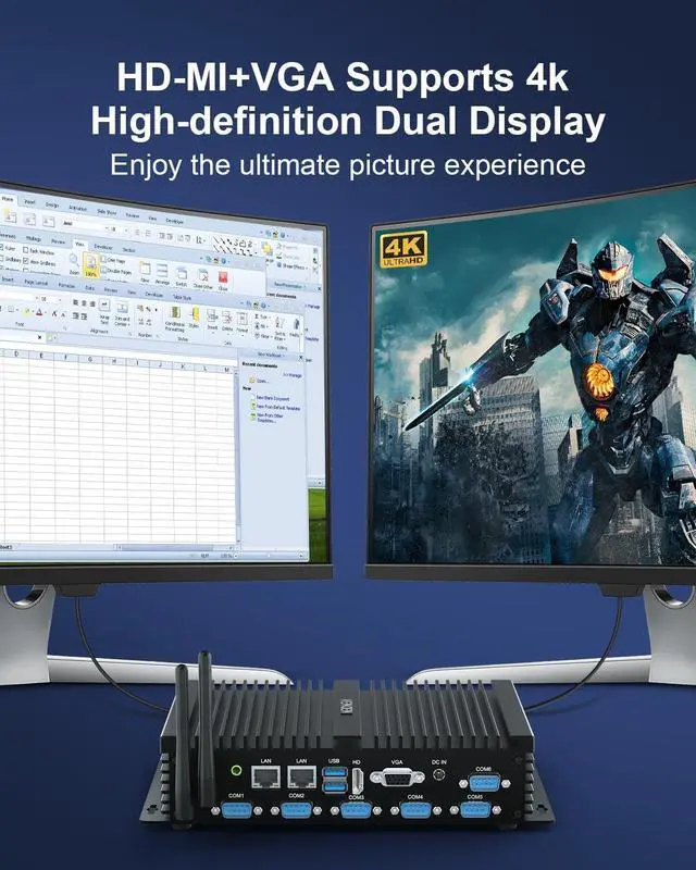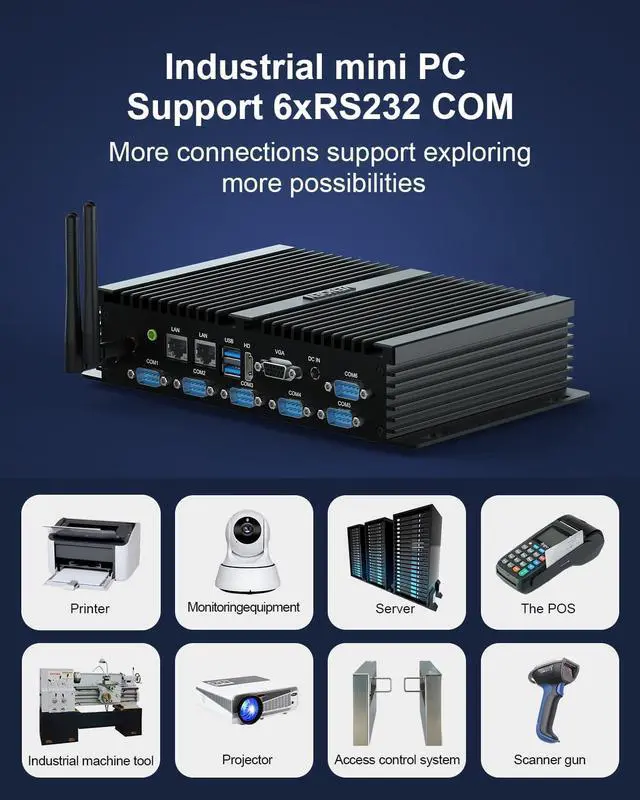 1VENOEN Industria Mini PC2Powerful Performance3Rich Interface CPUCore i7 8550U4 Core 8 Threads, 1.8GH z~ 4.0GH z CPUCore i5 8250U4 Core 8 Threads, 1.6GH z~ 3.4GH z GPUUHD Graphics 620Memory (RAM) Dual Channel DDR4-2666MHz RAM, Max to 64GBHard Disc1* Msata 3.0 SSD + 1* 2.5 inch SATA 3.0 HDD or SSDI/O ports1*HD, 1* VGA, 4*USB 3.0, 2*USB 2.0, 2*2500Mbps Ethernet, 6*RS232 COMMaterialBrushed Aluminum Alloy caseSystemPre-installed Win 11 Pro; supports Win 10, Win7Linux, UbuntuPower supplyDC 12V/5ADimension24*15*5cm, ( 1.4 kg Net weight)FunctionWake-on-LAN, Auto Power On, PXE UniqueFanless design, low noise; small size, saving space; DustproofPackage1*Mini PC, 1*power adapter, 1*User manual, 1*HD cable, 1*VESA Mount, 1*SATA data cable Detailed Configuration And Functions Of Fanless Industrial PC K4 Comprehensive testing to ensure 7x24H stable operation Widely used in various industries and fields