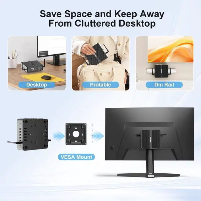 • Ultra HD 4K Triple displayWin 11 Pro Fanless mini pc supports dual HD+ one DP three screen 4K output. HD realistic image quality brings you an immersive visual experience. You can also easily connect three monitors at the same time and perform different tasks on three screens. The images inside the monitor reduce the tedious switching interface back and forth and improve work efficiency.