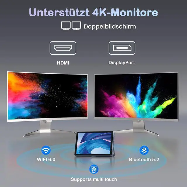 Multiple Connections \u2013 Equipped with 12 ports in total, including 4×USB (2xUSB 3.0, 2xUSB 2.0), HDMI/DP/Full-function Type-C (4K@60Hz, dual display support), 3.5mm audio jack, dual RJ45 Ethernet ports, TF card slot, plus WiFi 6 and Bluetooth 5.2. This small computer allows easy connection with monitors, projectors, TVs, and other office devices.