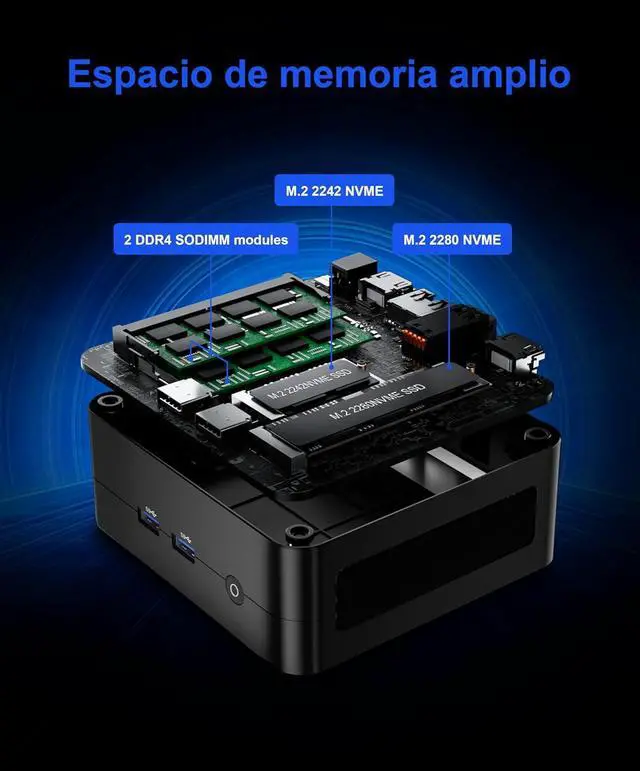 Expandable Memory & Storage Upgrade AnytimeThis mini desktop PC includes 16GB DDR4 RAM and a 512GB NVMe SSD for fast boot and file access. With dual-channel RAM support (upgradeable to 64GB) and expandable SSD storage(upgradeable to 2TB), you can easily handle multiple apps or large files. The small form factor design supports VESA mounting, saving valuable desk spaceperfect as a business desktop or home theater mini PC