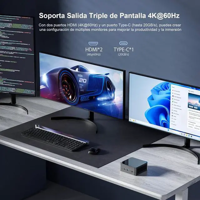 Triple 4K Display Output Boost Productivity & CreativityThe Ryzen 5 3550H small PC supports three 4K displays simultaneously (2× HDMI 2.0 + 1× Type-C), allowing you to expand your workspace with ultra HD clarity. Whether youre a stock trader, content creator, or multitasker, enjoy smooth triple-screen productivity without lag or tearing. Ideal as a mini workstation or 4K home entertainment PC