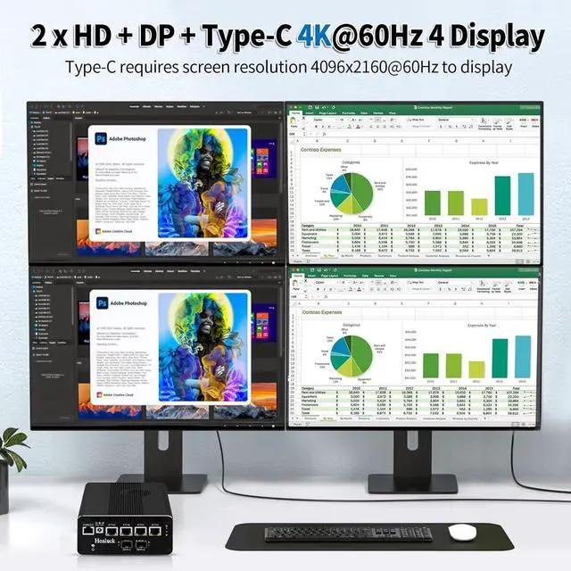 Output: 2HD2.0 + DP +Type C 4K@60Hz4 Display,(Type-C requires screen resolution 4096x2160@60Hz to display)