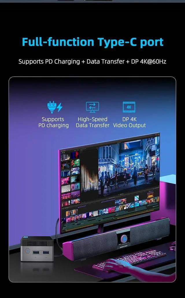 Rear: 1x Full-function Type-C (Data/PD/DP), 1x Power-only Type-C, 1x 3.5 mm Audio JackEthernetRJ45 port, 1000M/100M/10MBluetoothRTL8822CE /BT 5.0S ize72 × 72 × 44.5 mmNet Weight 235 g (excluding adapter) OSWindows 11 YOUYEETOO BY53 Windows 11 Mini PC TWIN LAKE N150 Mini Desktop Computers youyeetoo BY53 N150 Windows 11 Mini PC youyeetoo BY53 Mini PC