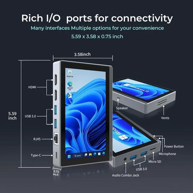 Pocket PC Computer-HEIGAOLAPC 5.5 inch Touchscreen Mini Desktop PC Intel N5095 All-in-One HEIGAOLA Mini PC with Built-in 5.5" Touch Display Mini Computer Desktop PC with Advanced Connectivity-Dual-Band Wi-Fi 5 & BT 5.0 Touchscreen Mini PC with 4K Dual Monitor Display HDMI 2.0 / USB-C 3.1 Windows 11 Pro Mini Computer PCEfficient Multi-Task Processing The Compact Entertainment Hub: Mini PC for 4K Streaming, Gaming & Home Office