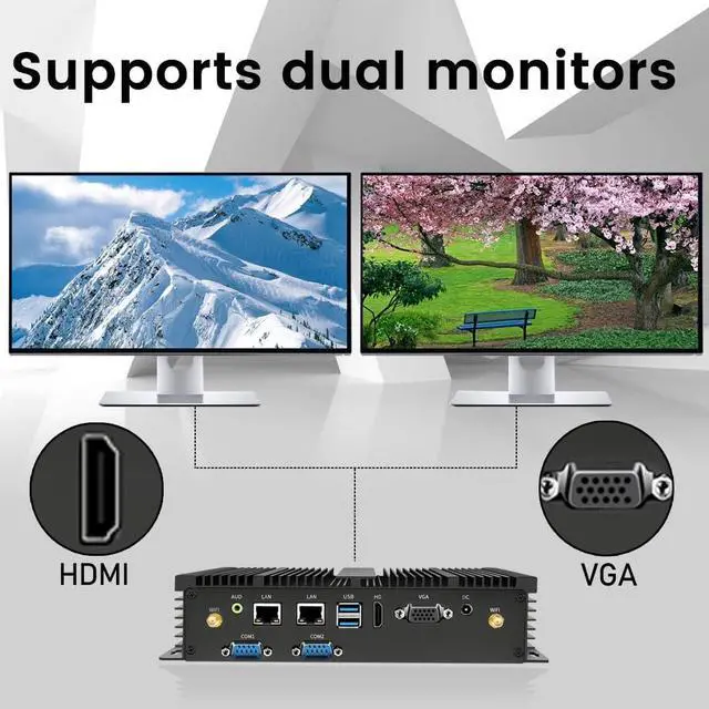 [Rich interface] Mini computer equipped 2 x COM RS232 port, 4 x USB 3.0, 2 x USB 2.0, 2 x Gigabit LAN port, 1 x Audio in/out, Support connect dual Monitor via HDMI & VGA Ports. USB 3.0 provide fast transfer speed, increase productivity and save time. It supports many peripherals, such as medical equipment, industrial equipment, office equipment, monitoring equipment, etc.