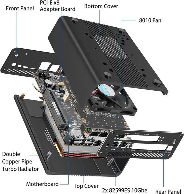 Equipped with 4x Intel i226-V 2.5GbE Network Card and 4*Intel X710 network card , bring you a new era of high speed network (To reach to 2.5Gb/10gbe speed, need your network, cables, upstream and downstream equipment also support 2.5GbE).
