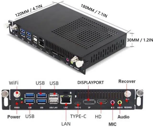 • BUILT IN MULTI : This small PC has 80 PIN OPS terminals, which contains HD Multimedia Interface , sound , serial , on off , status detection and so on.