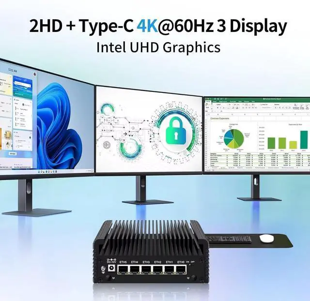 I/O: 6x I226V 2.5GbE Lan, 2x HD Port, 1x Type C Port, 4x USB 2.0, 1x USB 3.0, 1x TF Slot, 1x Power LED, 1 x Hard Disk LED