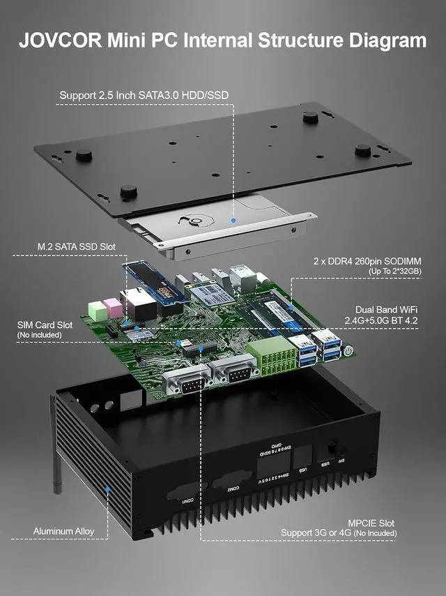 JOVCOR Mini PC JOVCOR Fanless Mini PC Fanless Industrial PC