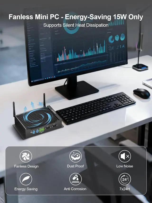 A5: This mini PC is a quiet yet powerful computer, making it an excellent and reliable choice for industrial environments, offices, network security, and education.