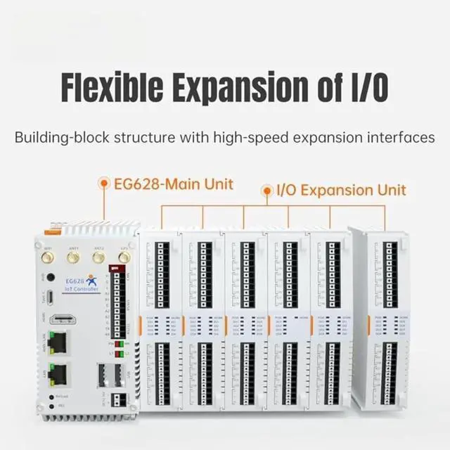 • USR-EG628 is an expandable ARM industrial computer built on the Linux Ubuntu system,featuring the WukongEdge app for edge gateway, local config, and PLC programming.