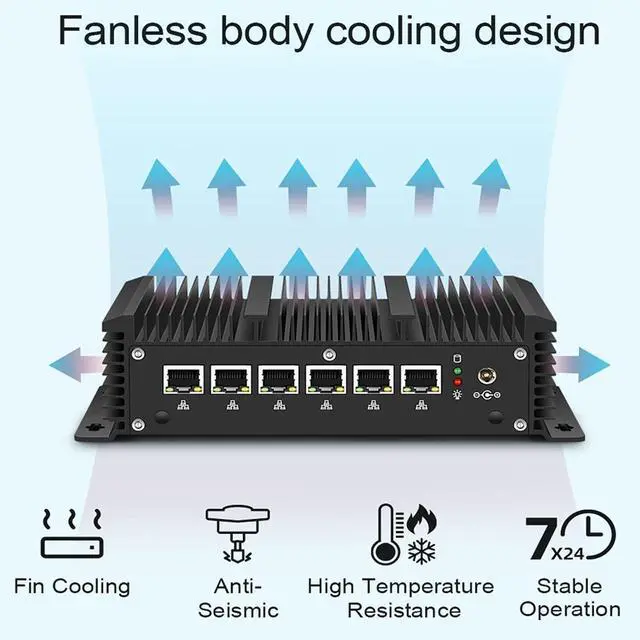 Back Panel: 6xRJ45 Gigabit LAN Port, 1xPower Supply Interface.