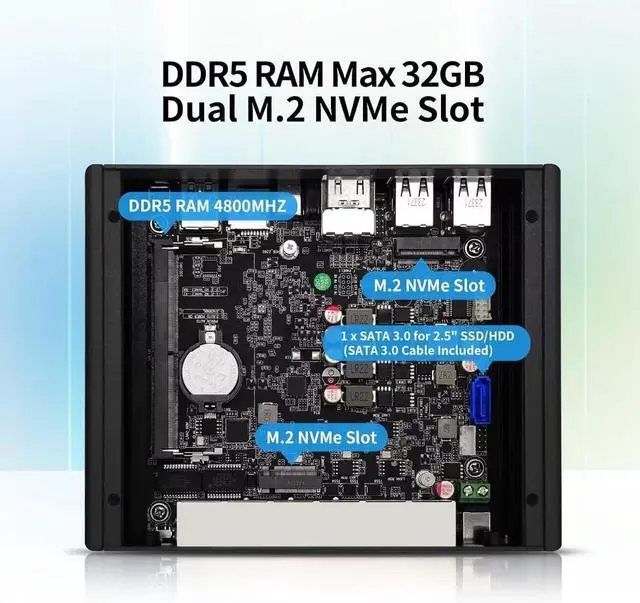 Memory: 1x DDR5 SO-DIMM slot, Max 32 GB